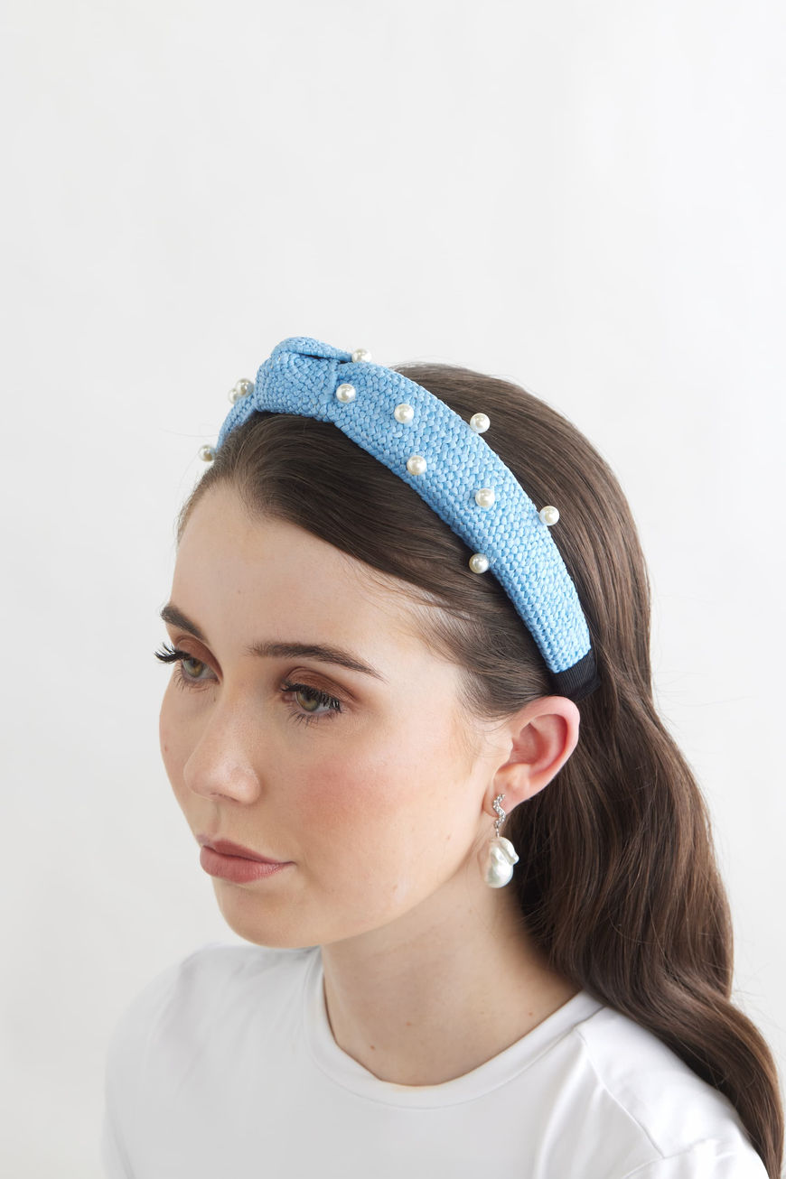 Meet the Park Avenue Pearls headband—where New York flair meets timeless elegance. Picture this: light blue raffia with a city-chic edge, adorned with faux pearls that scream sophistication. It's not just an accessory; it's a statement, darling. The vibrant raffia and classic pearls dance together in perfect harmony, creating a look that's as bold as a New York minute. Transform your 'fit with a touch of uptown charm, because when it comes to style, the Park Avenue Pearls headband takes centre stage.